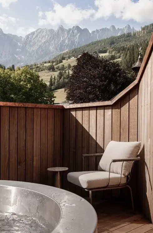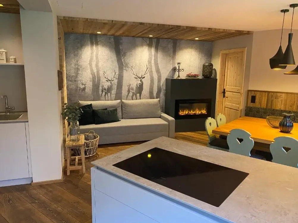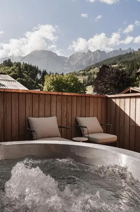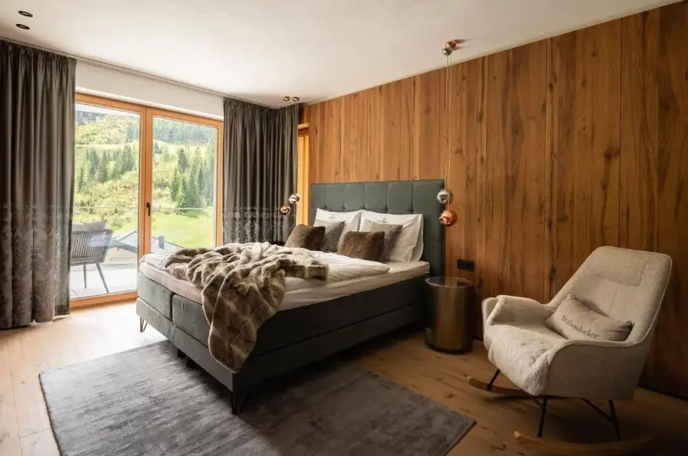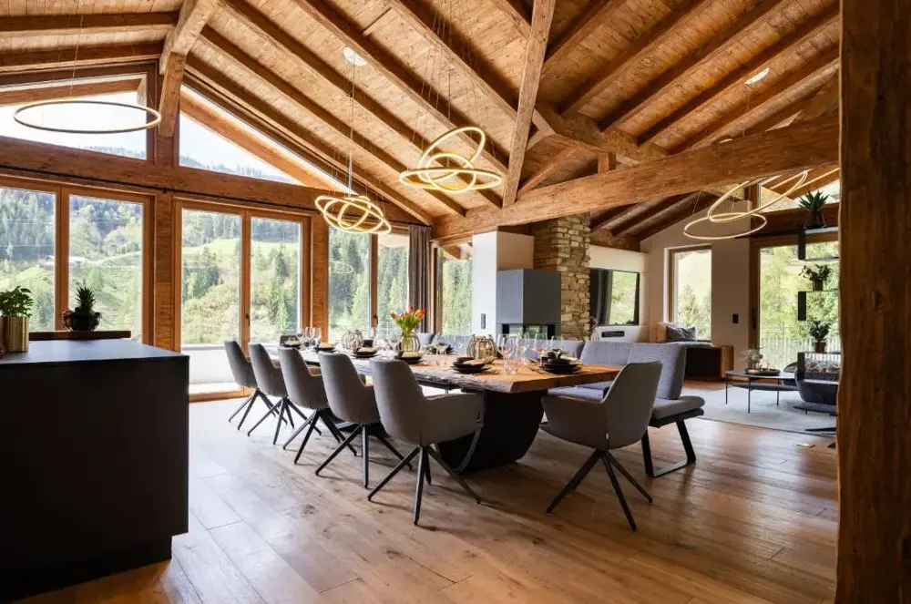 Weitere Informationen zu Apartment DaumDas Luxus-Chalet Frieda im Kellnergut liegt idyllisch in Mühlbach am Hochkönig, einem malerischen Ortsteil nahe Salzburg, und bietet einen exklusiven Rückzugsort für Gäste, die Wert auf Naturverbundenheit und moderne Ausstattung legen. Das Chalet besticht durch sein hochwertiges Design sowie eine sorgfältig durchdachte Innenausstattung, die sowohl Komfort als auch Funktionalität vereint.