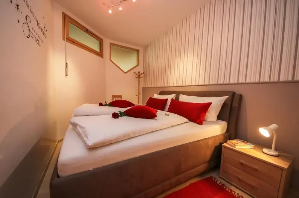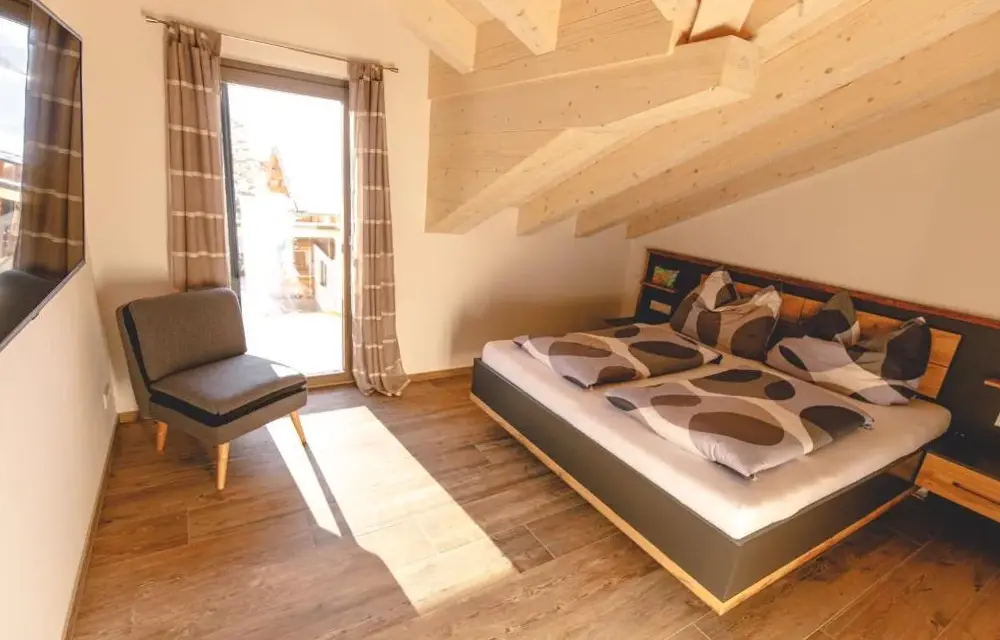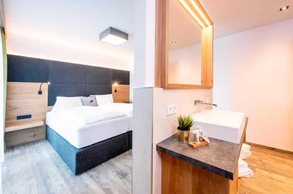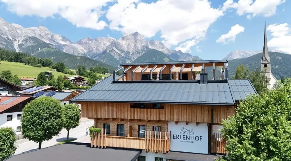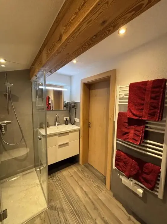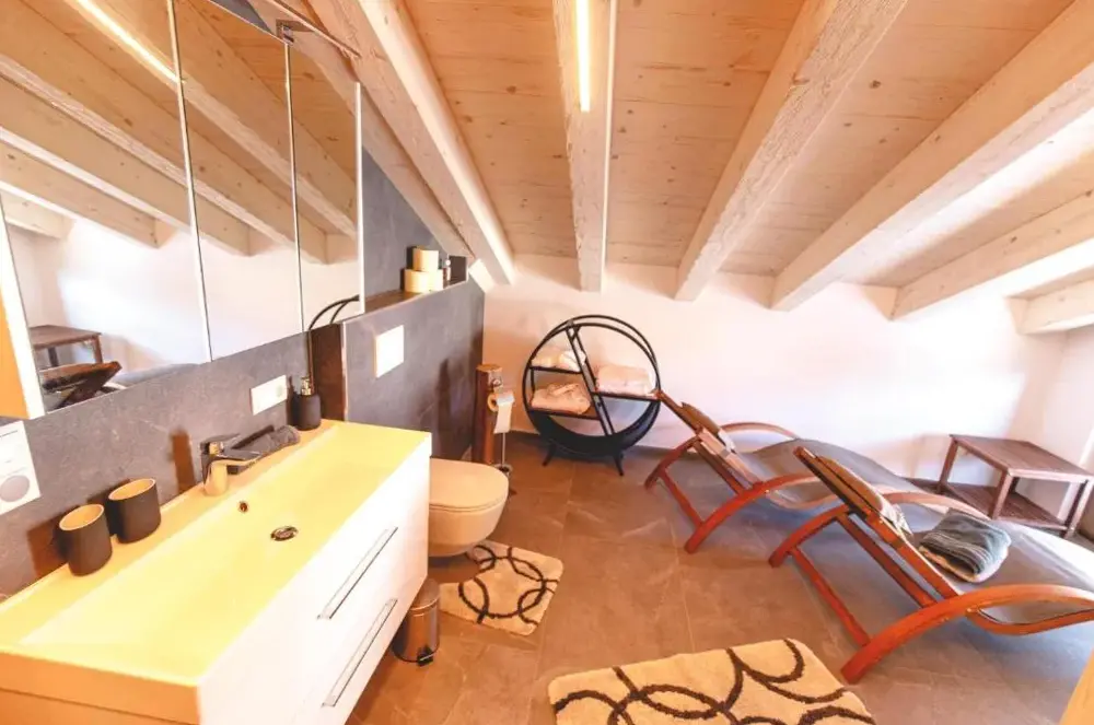 More information about Family Retreat Maria AlmErlenhof offers spacious accommodations with high ceilings and generous layouts, including units featuring two full bathrooms—a rarity in local lodging. Guests frequently highlight the expansive balconies overlooking alpine scenery, along with a recently renovated rooftop terrace ideal for sunbathing or relaxing after outdoor activities.