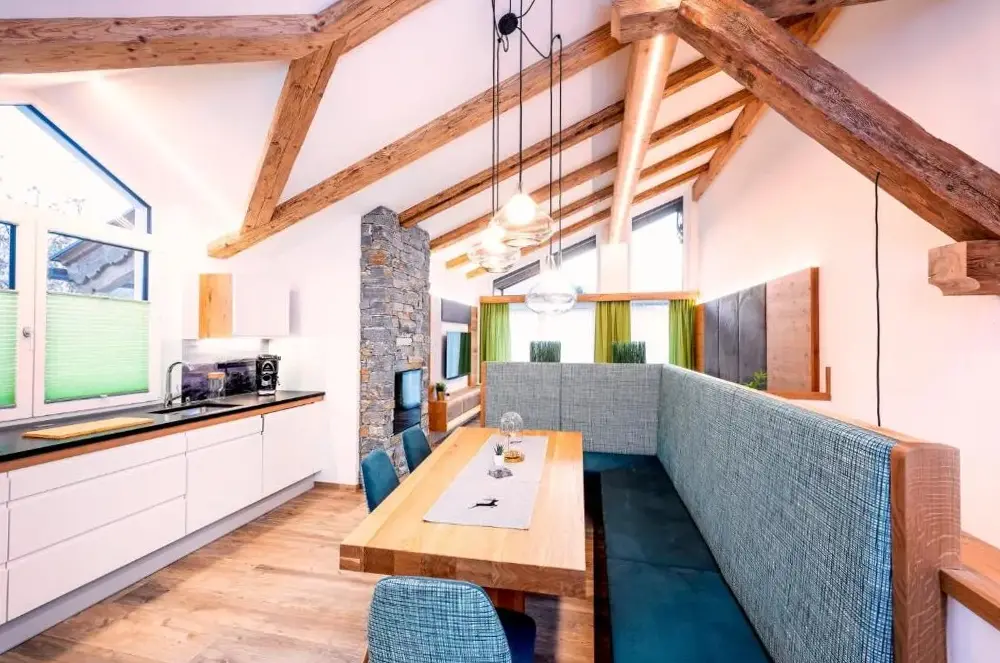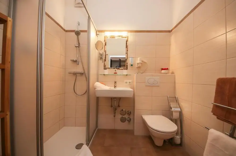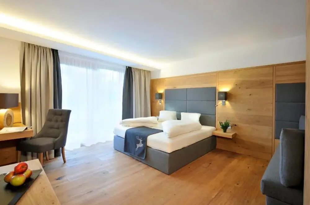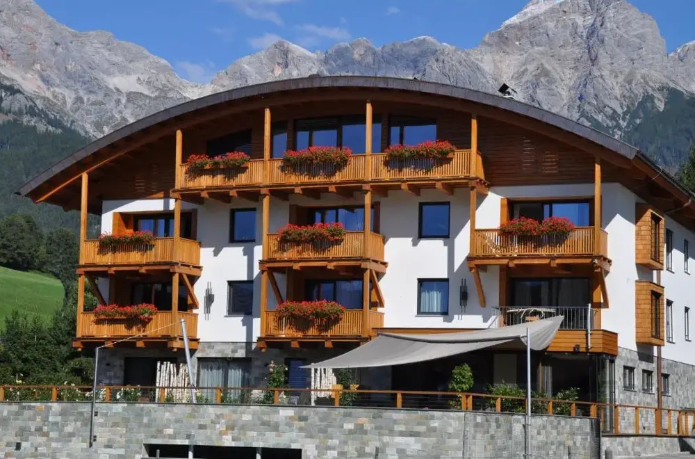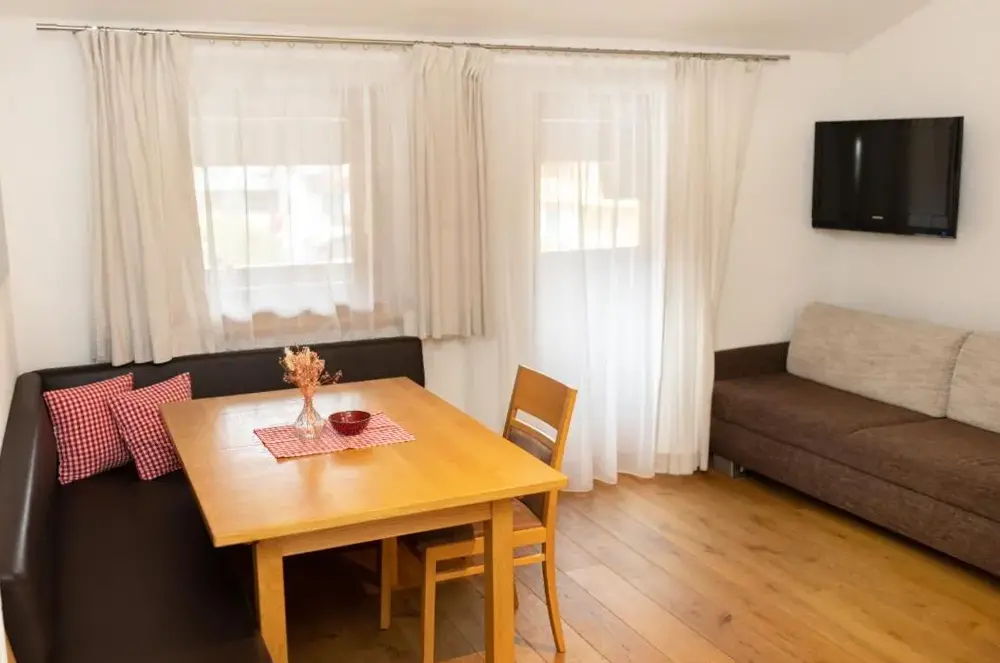More information about Family Retreat Maria AlmErlenhof offers spacious accommodations with high ceilings and generous layouts, including units featuring two full bathrooms—a rarity in local lodging. Guests frequently highlight the expansive balconies overlooking alpine scenery, along with a recently renovated rooftop terrace ideal for sunbathing or relaxing after outdoor activities.